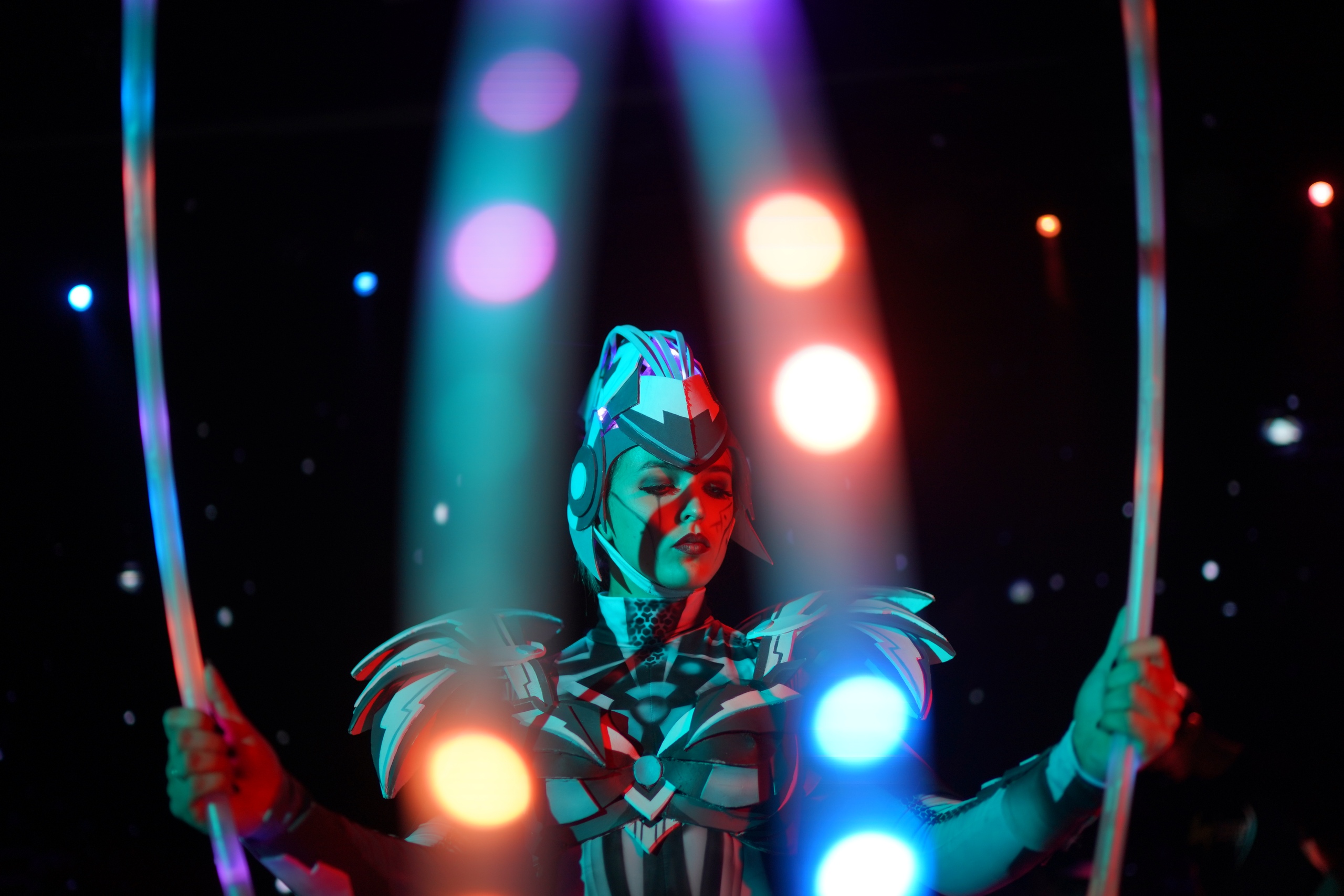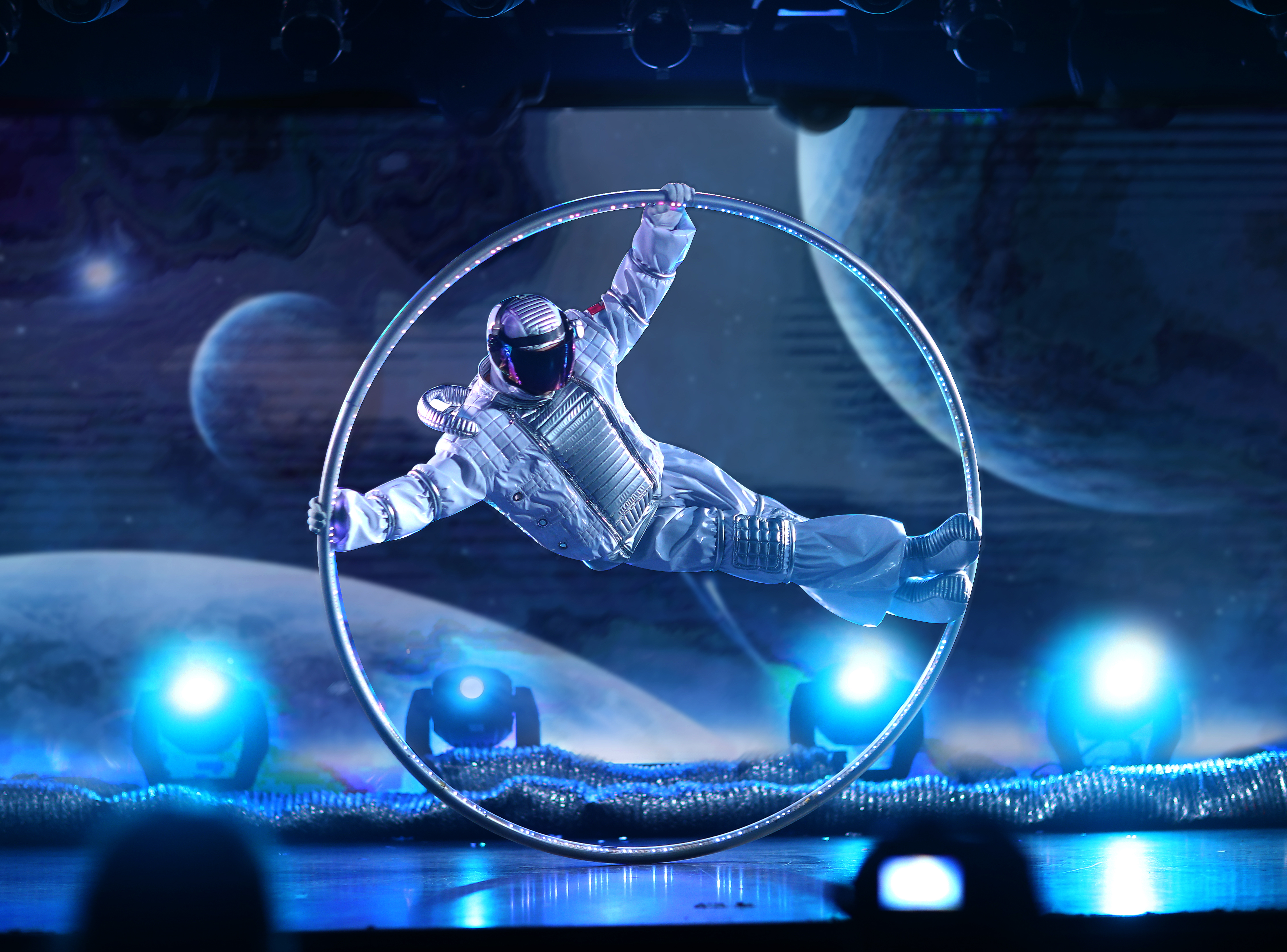- спецэффект “Человек в шаре” с акробатическими зарисовками